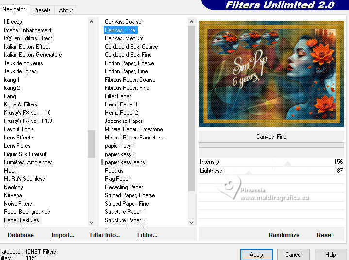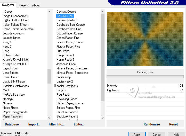 19. Effects>Plugins>Filters Unlimited 2.0 - Paper Textures - Canvas,Fine, default settings.