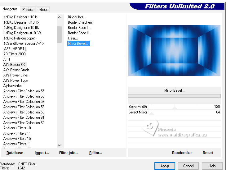 5. Effects>Plugins>Filters Unilimted 2.0 - Alf’s Border FX - Mirror Bevel, default settings.