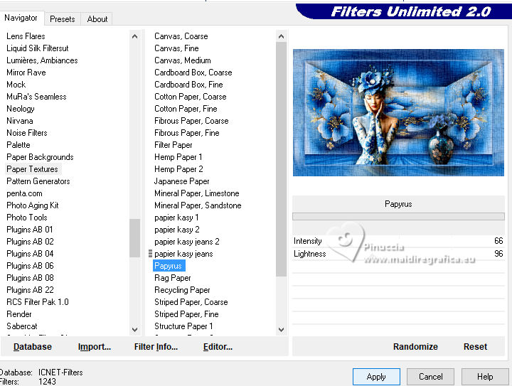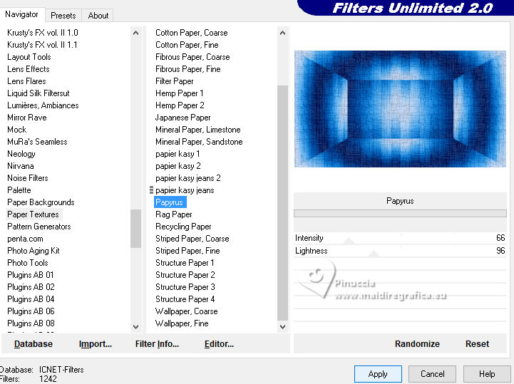 20. Effects>Plugins>Filters Unilimted 2.0 - Paper Texture - Papyrus, last settings
