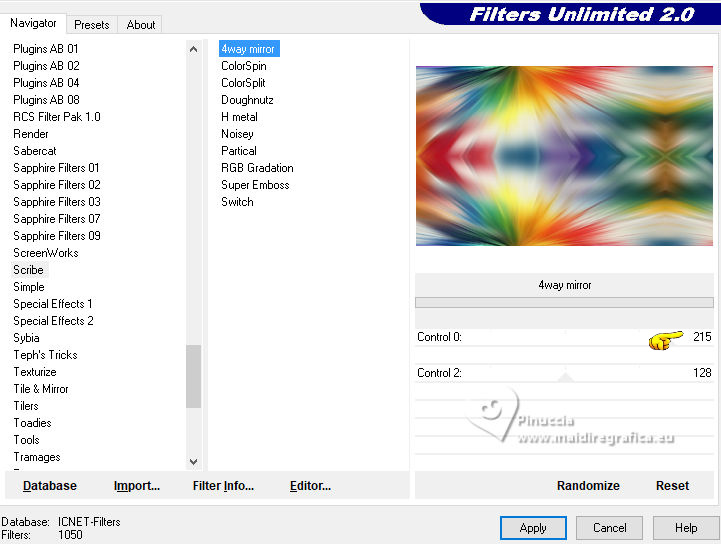 4. Effects>Plugins>Filters Unlimited 2.0 - Scribe - 4way mirror.
