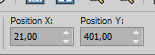 Set Position X: 21,00 and Position Y: 401,00.