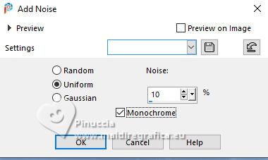 Adjust>Add/Remove Noise>Add Noise, last settings.