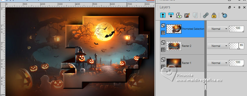 9. Open again the layer Raster 2 and reduce the opacity of this layer to 65%.