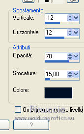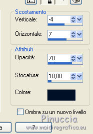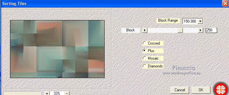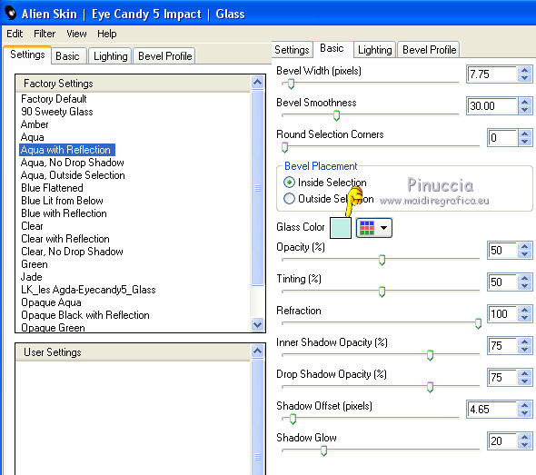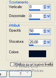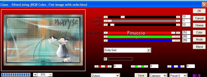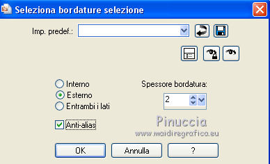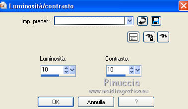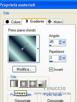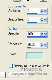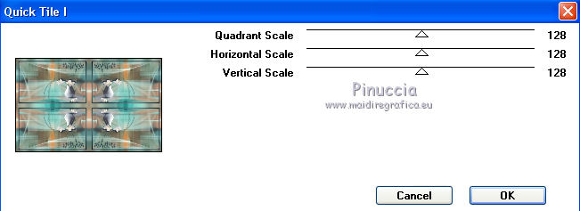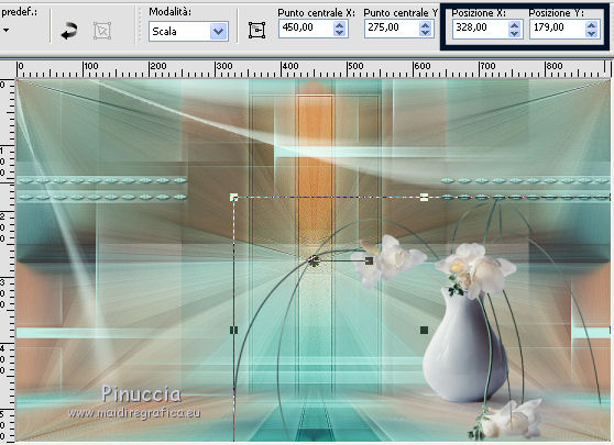 qui puoi trovare qualche risposta ai tuoi dubbi. Se l'argomento che ti interessa non è presente, ti prego di segnalarmelo. Questo tutorial è stato realizzato con Corel19 e tradotto con Corel X, ma può essere realizzato anche con le altre versioni di PSP. Dalla versione X4, il comando Immagine>Rifletti è stato sostituito con Immagine>Capovolgi in orizzontale, e il comando Immagine>Capovolgi con Immagine>Capovolgi in verticale. Nelle versioni X5 e X6, le funzioni sono state migliorate rendendo disponibile il menu Oggetti. Con la nuova versione X7, sono tornati Rifletti>Capovolgi, ma con nuove varianti. Vedi la scheda sull'argomento qui Occorrente: Materiale qui Le tube de la femme est de Colybrix. Le maschere sono di Narah. (in questa pagina trovi i links ai siti dei creatori di tubes) Filtri: se hai problemi con i filtri, consulta la mia sezione filtri qui Mehdi - Sorting Tiles qui Toadies - What are your qui Ap 01 Innovations - Lines SilverLining qui Mura's Meister - Perspective Tiling qui Alien Skin Eye Candy 5 Impact - Glass qui Graphics Plus - Cross Shadow, Quick Tile I qui Filters Unlimited 2.0 qui I filtri Toadies e Graphics Plus si possono usare da soli o importati in Filters Unlimited (come fare vedi qui) Se un filtro fornito appare con questa icona ![]() non esitare a cambiare modalità di miscelatura e opacità secondo i colori utilizzati. Nelle ultime versioni di PSP non c'è il gradiente di primo piano/sfondo (Corel_06_029) Puoi usare i gradienti delle versioni precedenti. Trovi qui i gradienti Corel X. Apri le maschere in PSP e minimizzale con il resto del materiale. Imposta il colore di primo piano con il colore chiaro #c1eee5, e il colore di sfondo con il colore scuro #021328. ![]() 1. Apri Alpha maryse. Finestra>Duplica, o sulla tastiera maiuscola+D per fare una copia. Chiudi l'originale. La copia, che sarà la base del tuo lavoro, non è vuota, ma contiene le selezioni salvate sul canale alfa. Riempi l'immagine trasparente con il colore scuro di sfondo.2. Selezione>Seleziona tutto. 3. Livelli>Nuovo livello raster. Apri il tube della donna, cancella la firma e vai a Modifica>Copia. Minimizza il tube. Torna al tuo lavoro e vai a Modifica>Incolla nella selezione. Selezione>Deseleziona. 4. Effetti>Effetti di immagine>Motivo unico, con i settaggi standard. ![]() 5. Regola>Sfocatura>Sfocatura radiale. ![]() 6. Effetti>Effetti di bordo>Aumenta - 2 volte. 7. Effetti>Effetti di immagine>Motivo unico, con i settaggi standard. ![]() 8. Livelli>Unisci>Unisci giù. 9. Livelli>Duplica. Effetti>Plugins>Mehdi - Sorting Tiles. ![]() 10. Cambia la modalità di miscelatura di questo livello in Luce diffusa. Livelli>Unisci>Unisci giù. 11. Effetti>Effetti di riflesso>Specchio rotante. ![]() 12. Livelli>Nuovo livello raster. Riempi con il colore chiaro.13. Livelli>Nuovo livello maschera>Da immagine. Apri il menu sotto la finestra di origine e vedrai la lista dei files aperti. Seleziona la maschera Narah 1262. ![]() Effetti>Effetti di bordo>Aumenta. Livelli>Unisci>Unisci gruppo. 14. Effetti>Effetti di immagine>Motivo unico, con i settaggi standard. 15. Selezione>Carica/Salva selezione>Carica selezione da canale alfa. La selezione Sélection#1 è subito disponibile. Devi soltanto cliccare Carica. ![]() Attiva il livello inferiore. Selezione>Innalza selezione a livello. Livelli>Disponi>Sposta su. 16. Livelli>Nuovo livello raster. Riempi con il colore scuro.Selezione>Modifica>Contrai - 2 pixels. Premi sulla tastiera il tasto CANC ![]() 17. Abbassa l'opacità dello strumento Riempimento a 50 e riempi la selezione con il colore chiaro.18. Selezione>Modifica>Contrai - 2 pixels. Riporta l'opacità dello strumento Riempimento a 100 e riempi la selezione con il colore scuro.19. Selezione>Modifica>Contrai - 2 pixels. Premi sulla tastiera il tasto CANC. Selezione>Deseleziona. Livelli>Unisci>Unisci giù. 20. Effetti>Plugins>Toadies - What are you, con i settaggi standard. ![]() 21. Effetti>Effetti di bordo>Aumenta. Cambia la modalità di miscelatura di questo livello in Sovrapponi, o altro. ![]() 22. Effetti>Effetti 3D>Sfalsa ombra, colore chiaro. ![]() 23. Livelli>Unisci>Unisci visibile. 24. Livelli>Duplica. Effetti>Plugins>Mura's Meister - Perspective Tiling. ![]() 25. Selezione>Carica/Salva selezione>Carica selezione da canale alfa. Apri il menu delle selezioni e carica sélection#2. ![]() Premi sulla tastiera il tasto CANC. Selezione>Deseleziona. 26. Effetti>Effetti 3D>Sfalsa ombra, colore scuro. ![]() 27. Livelli>Nuovo livello raster. Riempi con il colore chiaro.28. Livelli>Nuovo livello maschera>Da immagine. Apri il menu sotto la finestra di origine e seleziona la maschera Narah_mask_1254. ![]() Effetti>Effetti di bordo>Aumenta. Livelli>Unisci>Unisci gruppo. 29. Cambia la modalità di miscelatura di questo livello in Filtra, e abbassa l'opacità al 75%. ![]() 30. Livelli>Nuovo livello raster. Selezione>Carica/Salva selezione>Carica selezione da canale alfa. Apri il menu delle selezioni e carica la selezione sélection#3. ![]() Riempi la selezione con il colore chiaro.31. Effetti>Effetti 3D>Sfalsa ombra, colore scuro. ![]() 32. Effetti>Plugins>Alien Skin Eye Candy 5 Impact - Glass seleziona il preset Aqua with reflection e sotto Basic imposta il tuo colore chiaro. ![]() Selezione>Deseleziona. 33. Regola>Luminosità e contrasto>Luminosità e contrasto ![]() Se necessario (dipende dai tuoi colori) ripeti una seconda volta 34. Apri il tube del vaso di Maryse, cancella la firma, e vai a Modifica>Copia. Torna al tuo lavoro e vai a Modifica>Incolla come nuovo livello. Spostalo in basso a sinistra.I miei settaggi: strumento Puntatore ![]() Posizione X: 328,00 e Posizione Y: 179,00 ![]() 35. Regola>Luminosità e contrasto>Luminosità e contrasto (decidi in base al tuo tube) ![]() 36. Livelli>Duplica. Livelli>Unisci>Unisci giù. (per il tube fornito, non è obbligatorio se usi un altro tube). 37. Effetti>Effetti 3D>Sfalsa ombra. ![]() 38. Attiva il livello di sfondo. Selezione>Carica/Salva selezione>Caric