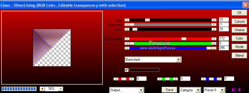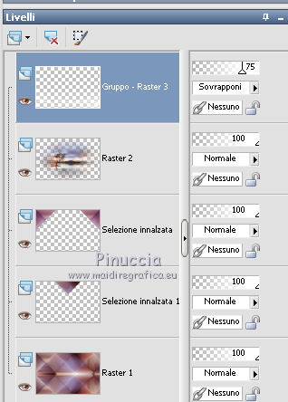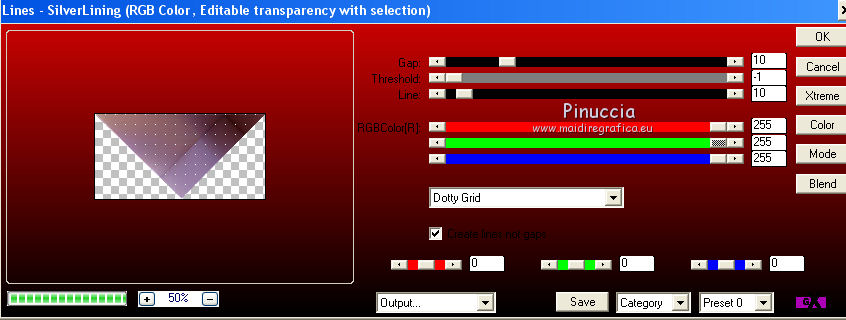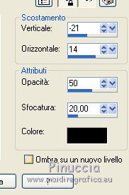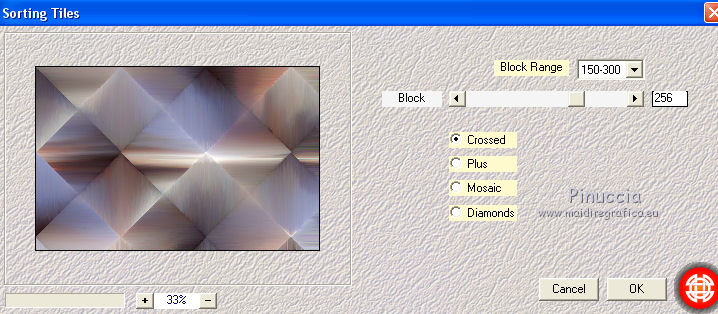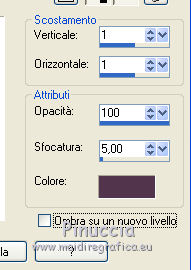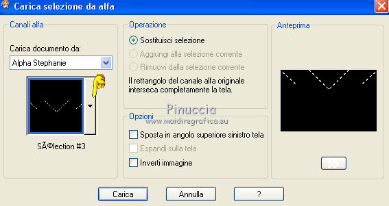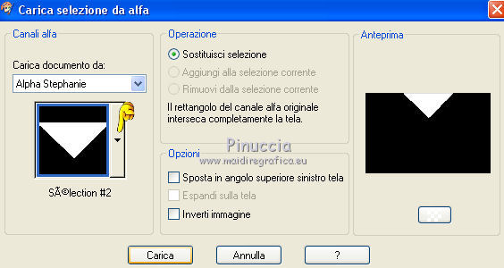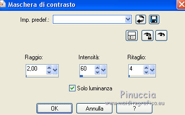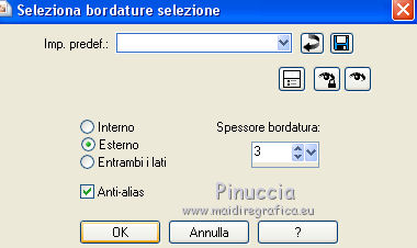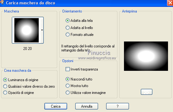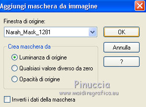 qui puoi trovare qualche risposta ai tuoi dubbi. Se l'argomento che ti interessa non è presente, ti prego di segnalarmelo. Questo tutorial è stato tradotto con Corel X, ma può essere realizzato anche con le altre versioni di PSP. Dalla versione X4, il comando Immagine>Rifletti è stato sostituito con Immagine>Capovolgi in orizzontale, e il comando Immagine>Capovolgi con Immagine>Capovolgi in verticale. Nelle versioni X5 e X6, le funzioni sono state migliorate rendendo disponibile il menu Oggetti. Con la nuova versione X7, sono tornati Rifletti>Capovolgi, ma con nuove varianti. Vedi la scheda sull'argomento qui Occorrente: Materiale qui Grazie: per il tube Lady Bird e per la maschera Narah (in questa pagina trovi i links ai siti dei creatori di tubes) Filtri: se hai problemi con i filtri, consulta la mia sezione filtri qui Alien Skin Eye Candy 5 Impact - Glass qui Graphics Plus - Cross Shadow, Quick Tile I qui Filters Unlimited 2.0 qui Mehdi - Sorting Tiles qui Adjust - Variations qui AP 01 [Innovations] - Lines SilverLining qui Carolaine and Sensibility - CS-DLines qui AAA Frames - Foto Frame qui I filtri Graphics Plus si possono usare da soli o importati in Filters Unlimited (come fare vedi qui) Se un filtro fornito appare con questa icona ![]() non esitare a cambiare modalità di miscelatura e opacità secondo i colori utilizzati. Apri le maschere in PSP e minimizzale con il resto del materiale. 1. Imposta il colore di primo piano con il colore chiaro #c9bfd1, e il colore di sfondo con il colore scuro #52364d. ![]() Apri Alpha stephanie. Finestra>Duplica, o sulla tastiera maiuscola+D per fare una copia. ![]() Chiudi l'originale. La copia, che sarà la base del tuo lavoro, non è vuota, ma contiene le selezioni salvate sul canale alfa. 2. Selezione>Seleziona tutto. Apri l'immagine "image fond" o un'altra immagine a tua scelta (ridimensionata a 900 pixels di larghezza) L'immagine servirà anche per il misted del paesaggio. Per cominciare usa un'immagine, non un misted, oppure comincia con l'immagine fornita e scegli un altro misted più tardi. 3. Modifica>Copia, e minimizza l'immagine. Torna al tuo lavoro e vai a Modifica>Incolla nella selezione. Selezione>Deseleziona. 4. Effetti>Effetti di immagine>Motivo unico, con i settaggi standard. ![]() 5. Regola>Sfocatura>Sfocatura radiale. ![]() 6. Effetti>Effetti di bordo>Aumenta - 2 volte. 7. Effetti>Plugins>Mehdi - Sorting Tiles. ![]() 8. Effetti>PluginS>Filters Unlimited 2.0 - Tile & Mirror - Mirror (horizontal) ![]() 9. Attiva nuovamente l'immagine di sfondo. Livelli>Carica/Salva maschera>Carica maschera da disco. Cerca e carica la maschera 20-20. (oppure Livelli>Nuovo livello maschera>Da immagine, se non hai la maschera nella cartella Maschere) ![]() Livelli>Duplica, per applicare la maschera due volte ![]() Livelli>Unisci>Unisci gruppo. Modifica>Copia. (puoi chiudere l'immagine perchè non ti servirà più: rispondi no alla domanda, se non vuoi salvare soltanto l'immagine in jpg; sì se vuoi salvare soltanto il misted. Se invece vuoi conservare sia il misted che l'immagine: File>Salva con nome) 10. Torna al tuo lavoro e vai a Modifica>Incolla come nuovo livello. Non spostarlo. E' al suo posto ![]() 11. Attiva il livello Raster 1. Effetti>Plugins>Adjust - Variations. un clic su Original per annullare eventuali precedenti messaggi memorizzati dal filtro, un clic su More Red e ok (adatta i settaggi ai tuoi colori). ![]() 12. Rimani posizionato sul livello di sfondo. Selezione>Carica/Salva selezione>Carica selezione da canale alfa. La selezione Sélection#1 è subito disponibile. Devi soltanto cliccare Carica. ![]() Selezione>Innalza selezione a livello. 13. Effetti>Plugins>AP 01 [Innovations] - Lines SilverLining - Backslash ![]() (adatta i settaggi colori per adattarli ai tuoi colori) 14. Selezione>Modifica>Seleziona bordature selezione. ![]() Riempi con il colore scuro di sfondo.Selezione>Deseleziona. 15. Livelli>Duplica. Immagine>Rifletti. Livelli>Unisci>Unisci giù. 16. Attiva nuovamente il livello di sfondo. Selezione>Carica/Salva selezione>Carica selezione da canale alfa. Apri il menu delle selezioni e carica Sélection#2 ![]() Selezione>Innalza selezione a livello. 17. Effetti>Plugins>AP 01 [Innovations] - Lines SilverLining - Dotty Grid in bianco ![]() Selezione>Deseleziona. 18. Attiva il livello superiore. Imposta il colore di primo piano con il colore bianco. Riempi il livello con il colore bianco.19. Livelli>Nuovo livello maschera>Da immagine. Apri il menu sotto la finestra di origine e vedrai la lista dei files aperti. Seleziona la maschera Narah_Mask_1281. ![]() Effetti>Effetti di bordo>Aumenta. Livelli>Unisci>Unisci gruppo. 20. Attiva lo strumento Puntatore ![]() e imposta Posizione X: 2,00 e Posizione Y: 166,00. ![]() Cambia la modalità di miscelatura di questo livello in Sovrapponi, e abbassa l'opacità al 75%. ![]() 21. Livelli>Duplica. Immagine>Rifletti. 22. Livelli>Nuovo livello raster. Selezione>Carica/Salva selezione>Carica selezione da canale alfa. Apri il menu delle selezioni e carica Sélection#3 ![]() Selezione>Innalza selezione a livello. Riporta il colore di primo piano al colore chiaro iniziale. Riempi la selezione con il colore chiaro di primo piano.Selezione>Deseleziona. Regola>Messa a fuoco>Metti a fuoco. 23. Effetti>Effetti 3D>Sfalsa ombra, con il colore scuro. ![]() 24. Attiva il livello di sfondo. Livelli>Duplica. Livelli>Disponi>Porta in alto. 25. Effetti>Effetti geometrici>Cerchio. ![]() 26. Immagine>Ridimensiona, al 15%, tutti i livelli non selezionato. 27. Effetti>Plugins>Alien Skin Eye Candy 5 Impact - Glass. Seleziona il preset Clear e ok. ![]() 28. Attiva lo strumento Puntatore ![]() e imposta Posizione X: 30,00 e Posizione Y: 19,00. ![]() 29. Livelli>Duplica. Immagine>Rifletti. 30. Di nuovo Livelli>Duplica. Immagine>Ridimensiona, al 75%, tutti i livelli non selezionato. Attiva lo strumento Puntatore ![]() e imposta Posizione X: 390,00 e Posizione Y: 20,00. ![]() 31. Dalla versione PSPX8: Selezion