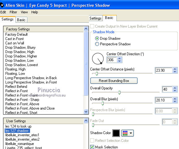 13. Effets>Modules Externes>Alien Skin Eye Candy 5 Impact - Perspective Shadow.