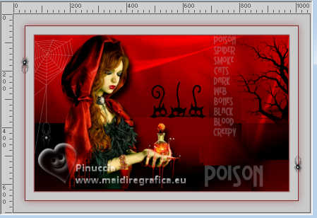 21. Image>Ajouter des bordures, 1 pixel, symétrique, couleur #740001.