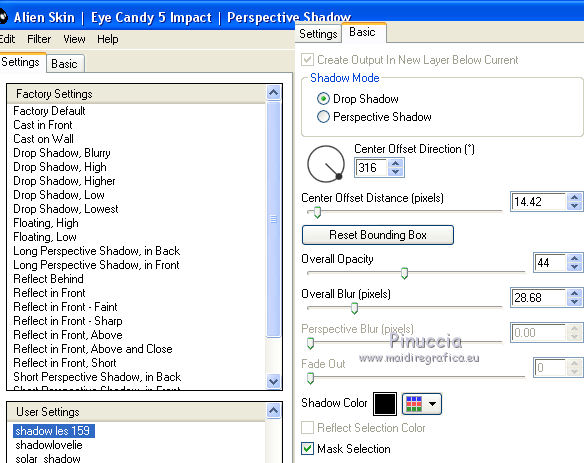 12. Effets>Modules Externes>Alien Skin Eye Candy 5 Impact - Perspective Shadow.