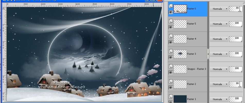 qui puoi trovare qualche risposta ai tuoi dubbi. Se l'argomento che ti interessa non è presente, ti prego di segnalarmelo. Questo tutorial è stato creato con CorelX9, ma può essere eseguito anche con le altre versioni. Dalla versione X4, il comando Immagine>Rifletti è stato sostituito con Immagine>Capovolgi in orizzontale, e il comando Immagine>Capovolgi con Immagine>Capovolgi in verticale. Nelle versioni X5 e X6, le funzioni sono state migliorate rendendo disponibile il menu Oggetti. Con la nuova versione X7 sono tornati Rifletti/Capovolgi, ma con nuove differenze. Vedi la scheda sull'argomento qui traduzione francese/traduction française qui/ici Le vostre versioni/vos versions qui![]() Occorrente: ![]() Per i tubes e le maschere grazie Babette, Calligraphy e Silvie. Il resto del materiale è di Corry. (in questa pagina trovi i links ai siti dei creatori di tubes) ![]() in caso di dubbi, ricorda di consultare la mia sezione filtri qui Alien Skin Eye Candy 5 Impact - Perspective Shadow qui VanDerLee - Snowflakes qui ![]() Se utilizzi altri colori, non esitare a cambiare modalità di miscelatura e opacità dei livelli Metti il preset Cliccando sul file una o due volte (a seconda delle tue impostazioni), automaticamente il preset si installerà nella cartella corretta. perchè uno o due clic vedi qui ![]() 1. Imposta il colore di primo piano con #193040, e il colore di sfondo con il colore bianco #ffffff. ![]() 2. Apri una nuova immagine trasparente 900 x 550 pixels. Riempi l'immagine trasparente con il colore di primo piano #193040.3. Livelli>Nuovo livello raster. Effetti>Plugins>VanDerLee - Snowflakes. se usi la versione precedente di questo filtro (il risultato non cambia); Effetti>Plugins>Vdl Adrenaline - Snowflakes ![]() 4. Abbassa l'opacità di questo livello all'80%. 5. Livelli>Nuovo livello raster. Riempi con il colore bianco di sfondo #ffffff.6. Livelli>Nuovo livello maschera>da immagine. Apri il menu sotto la finestra di origine e vedrai la lista dei files aperti. Seleziona la maschera 184 Silvie Mask Neonmoon ![]() Livelli>Unisci>Unisci gruppo. 7. Apri il tube del paesaggio di Babette Paysage 67-15 , cancella il watermark e vai a Modifica>Copia.Torna al tuo lavoro e vai a Modifica>Incolla come nuovo livello. Posiziona il tube al centro.8. Apri element 1 e vai a Modifica>Copia.Torna al tuo lavoro e vai a Modifica>Incolla come nuovo livello. 9. Tasto K per attivare lo strumento Puntatore ![]() e imposta Posizione X: 1,00 e Posizione Y: -8,00. ![]() 10. Apri il tube sneeuwlaag e vai a Modifica>Copia.Torna al tuo lavoro e vai a Modifica>Incolla come nuovo livello. Spostalo sul bordo inferiore,o imposta Posizione X: 0,00 e Posizione Y: 436,00. ![]() 11. Apri il tube huisjes e vai a Modifica>Copia.Torna al tuo lavoro e vai a Modifica>Incolla come nuovo livello. Imposta Posizione X: 2,00 e Posizione Y: 333,00. ![]() Tasto M per deselezionare lo strumento. 12. Abbassa l'opacità di questo livello all'80%. ![]() 13. Apri il tube dei pupazzi di neve Callitube-37natal, cancella il watermark e vai a Modifica>Copia.Torna al tuo lavoro e vai a Modifica>Incolla come nuovo livello. Immagine>Ridimensiona, al 50%, tutti i livelli non selezionato. Posiziona i tubes a tuo piacimento.Per la mia versione, ho selezionato ciascun pupazzo di neve e li ho posizionati separatamente, come nell'esempio ![]() 14. Apri il testo Tekst Snowy Days , cancella il watermark e vai a Modifica>Copia.Torna al tuo lavoro e vai a Modifica>Incolla come nuovo livello. Sposta il testo in alto a destra.15. Immagine>Aggiungi bordatura, 1 pixel, simmetriche, colore di primo piano #193040. Immagine>Aggiungi bordatura, 1 pixel, simmetriche, colore bianco #ffffff. Immagine>Aggiungi bordatura, 1 pixel, simmetriche, colore di primo piano #193040. Immagine>Aggiungi bordatura, 22 pixels, simmetriche, colore bianco #ffffff. Immagine>Aggiungi bordatura, 1 pixel, simmetriche, colore di primo piano #193040. 16. Selezione>Seleziona tutto. Immagine>Aggiungi bordatura, 40 pixels, simmetriche, colore bianco #ffffff. 17. Effetti>Effetti 3D>Sfalsa ombra, colore di primo piano #193040. ![]() Selezione>Deseleziona. 18. Firma il tuo lavoro su un nuovo livello. 19. Apri il tube wintertak-7027b e vai a Modifica>Copia.Torna al tuo lavoro e vai a Modifica>Incolla come nuovo livello. Sposta il tube nell'angolo in alto a sinistra.20. Effetti>Plugins>Alien Skin eye Candy 5 Impact - Perspective Shadow. Seleziona il preset les 161 e ok. ![]() 21. Immagine>Aggiungi bordatura, 1 pixel, simmetriche, colore di primo piano #193040. Salva in formato jpg. Per i tubes di questo esempio grazie Thafs, Silvie, Mou ![]() ![]() Puoi scrivermi per qualsiasi problema, o dubbio, se trovi un link che non funziona, o anche soltanto per un saluto. 25 Ottobre 2022 |