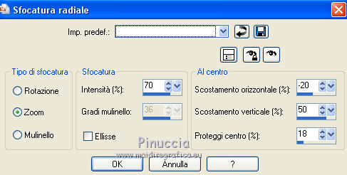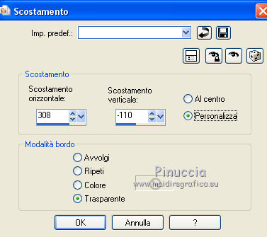 Occorrente: Materiale qui Tubes: Gabry - Design Corry. Tekst - Design Corry. Filtri in caso di dubbi, ricorda di consultare la mia sezione filtri qui Mehdi - Weaver qui Flaming Pear - Flood qui Alien Skin Eye Candy 5 Impact - Glass qui ![]() Se utilizzi altri colori, non esitare a cambiare modalità di miscelatura e opacità dei livelli Nelle ultime versioni di PSP non c'è il gradiente di primo piano/sfondo (Corel_06_029) Trovi i gradienti delle versioni precedenti qui Metti il preset Cliccando sul file una o due volte (a seconda delle tue impostazioni), automaticamente il preset si installerà nella cartella corretta. perchè uno o due clic vedi qui Apri le maschere in PSP e minimizzale con il resto del materiale. 1. Imposta il colore di primo piano con #333a46, e il colore di sfondo con #7c8da9. ![]() Passa il colore di primo piano a Gradiente di primo piano/sfondo, stile Lineare. ![]() 2. Apri una nuova immagine trasparente 900 x 550 pixels, e riempila con il gradiente.3. Regola>Sfocatura>Sfocatura gaussiana - raggio 20. ![]() 4. Livelli>Nuovo livello raster. Selezione>Seleziona tutto. Apri il tube Gabry woman 366 e vai a Modifica>Copia. non chiuderlo, perchè ti servirà ancora Torna al tuo lavoro e vai a Modifica>Incolla nella selezione. Selezione>Deseleziona. 5. Regola>Sfocatura>Sfocatura radiale. ![]() 6. Effetti>Plugins>Mehdi - Weaver. ![]() 7. Effetti>Plugins>Flaming Pear - Flood. ![]() 8. Apri il tube del paesaggio "zeegezich" e vai a Modifica>Copia. Torna al tuo lavoro e vai a Modifica>Incolla come nuovo livello. 9. Effetti>Effetti di immagine>Scostamento. ![]() Abbassa l'opacità di questo livello all'85%. 10. Imposta il colore di sfondo con il colore bianco di sfondo #ffffff. Livelli>Nuovo livello raster. Riempi il livello con il colore bianco di sfondo #ffffff.Livelli>Nuovo livello maschera>Da immagine. Apri il menu sotto la finestra di origine e vedrai la lista dei files aperti. Seleziona la maschera LF-Mask-189, con i seguenti settaggi. ![]() Livelli>Unisci>Unisci gruppo. 11. Immagine>Rifletti. 12. Livelli>Nuovo livello raster. Riempi con il colore bianco.Livelli>Nuovo livello maschera>Da immagine. Apri il menu sotto la finestra di origine e seleziona la maschera masque_295_franiemargot, con i seguenti settaggi. ![]() Livelli>Unisci>Unisci gruppo. 13. Apri tekst les 128, e vai a Modifica>Copia. Torna al tuo lavoro e vai a Modifica>Incolla come nuovo livello. 14. Effetti>Effetti di immagine>Scostamento. ![]() 15. Modifica>Copia Unione. Modifica>Incolla come nuova immagine. Rimani su questa immagine. Immagine>Ridimensiona, al 18%, tutti i livelli selezionato. 16. Effetti>Plugins>Alien Skin Eye Candy 5 Impact - Glass. seleziona il preset les 128 e ok. ![]() Questi i settaggi, in caso di problemi con il preset. ![]() 17. Immagine>Aggiungi bordatura, 14 pixels, simmetriche, colore bianco di sfondo #ffffff. Modifica>Copia. Torna al tuo lavoro originale e vai a Modifica>Incolla come nuovo livello. 18. Effetti>Effetti di immagine>Scostamento. ![]() 19. Effetti>Effetti 3D>Sfalsa ombra, colore nero. ![]() 20. Effetti>Plugins>Flaming Pear - Flood. Cambia Horizon con 79 e ok. ![]() 21. Immagine>Aggiungi bordatura, 1 pixels, simmetriche, colore di primo piano #333a46. Immagine>Aggiungi bordatura, 1 pixel, simmetriche, colore bianco di sfondo #ffffff. Immagine>Aggiungi bordatura, 1 pixels, simmetriche, colore di primo piano #333a46. Immagine>Aggiungi bordatura, 22 pixels, simmetriche, colore bianco di sfondo #ffffff. Immagine>Aggiungi bordatura, 1 pixels, simmetriche, colore di primo piano #333a46. Immagine>Aggiungi bordatura, 1 pixel, simmetriche, colore bianco di sfondo #ffffff. Immagine>Aggiungi bordatura, 1 pixels, simmetriche, colore di primo piano #333a46. Selezione>Seleziona tutto. Immagine>Aggiungi bordatura, 35 pixels, simmetriche, colore bianco di sfondo #ffffff. 22. Effetti>Effetti 3D>Sfalsa ombra, colore di primo piano #333a46. ![]() Ripeti l'Effetto Sfalsa ombra, cambiando verticale e orizzontale con -3. Selezione>Deseleziona. 23. Apri il tube degli uccelli e vai a Modifica>Copia. Torna al tuo lavoro e vai a Modifica>Incolla come nuovo livello. Spostalo in alto a destra.Abbassa l'opacità di questo livello al 75%. 24. Apri il tube della donna di Gabry e vai a Modifica>Copia. Torna al tuo lavoro e vai a Modifica>Incolla come nuovo livello. Immagine>Ridimensiona, al 95%, tutti i livelli non selezionato. Spostalo un po' più a sinistra.25. Apri il testo tekst end of summer, e vai a Modifica>Copia. Torna al tuo lavoro e vai a Modifica>Incolla come nuovo livello. Spostalo dove preferisci o vedi il mio esempio.26. Firma il tuo lavoro su un nuovo livello. 27. Immagine>Aggiungi bordatura, 1 pixels, simmetriche, colore di primo piano #333a46. Salva in formato jpg. Per questo esempio ho usato un tube di Min@ ![]() ![]() Puoi scrivermi per qualsiasi problema, o dubbio se trovi un link che non funziona, o anche soltanto per dirmi se questo tutorial ti è piaciuto. 25 Settembre 2015 |