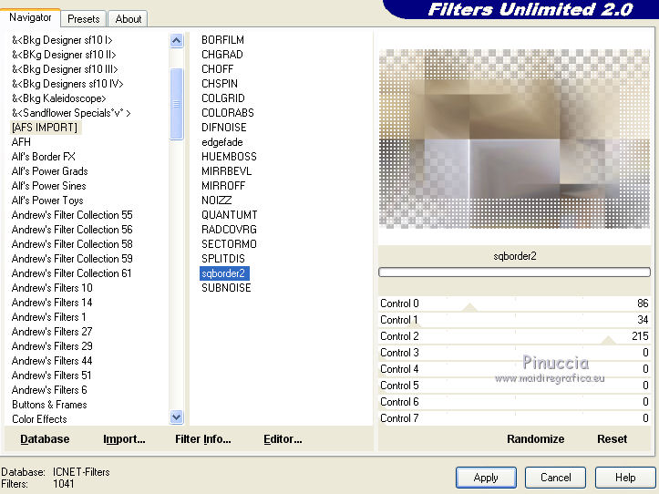 8. Effets>Modules Externes>Filters Unlimited 2.0 - AFS IMPORT - sqborder2.
