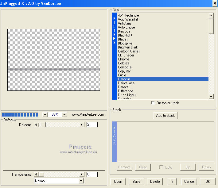 12. Effets>Modules Externes>VanDerLee - Unplugged-X - Defocus, par défaut.