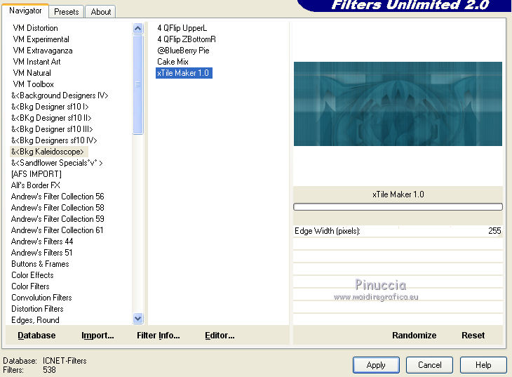 14. Effetti>Plugins>Filters Unlimited 2.0 - &<Bkg Kaleidoscope> - xTile Maker 1.0.