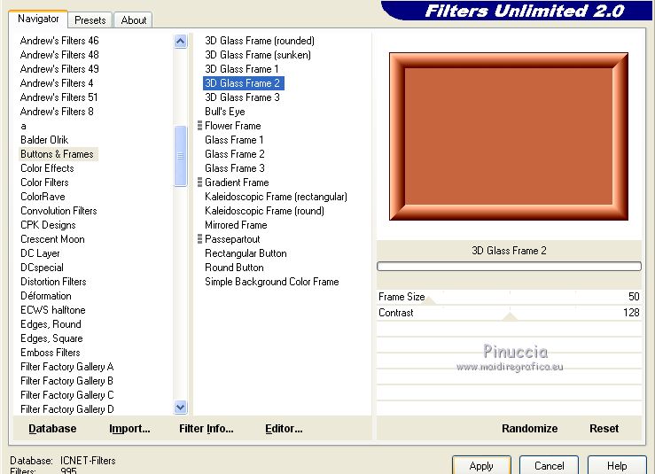 45. Effetti>Plugins>Filters Unlimited 2.0 - Buttons &Frames - 3D Glass Frame 2.