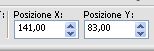 e imposta Posizione X: 141,00 e Posizione Y: 83,00.