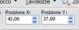e imposta Posizione X: 43,00 e Posizione Y: 37,00