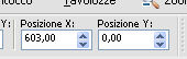 e imposta Posizione X: 603,00 e Posizione Y: 0,00