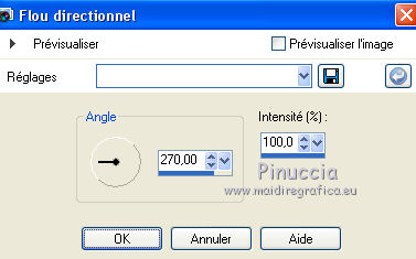 Ce tutoriel a été créé et traduit avec CorelX12, mais il peut également être exécuté avec les autres versions. Suivant la version utilisée, vous pouvez obtenir des résultats différents. Depuis la version X4, la fonction Image>Miroir a été remplacée par Image>Renverser horizontalement, et Image>Renverser avec Image>Renverser verticalement. Dans les versions X5 et X6, les fonctions ont été améliorées par la mise à disposition du menu Objets. Avec la nouvelle version X7, nous avons encore Image>Miroir et Image>Renverser/Retourner, mais avec nouvelles différences. Voir les détails à ce sujet ici Certaines dénominations ont changées entre les versions de PSP. Les plus frequentes dénominations utilisées: ![]() Traduction en italien ici Nécessaire pour réaliser ce tutoriel: Matériel ici Le tube utilisé est de Isa Modules Externes: consulter, si nécessaire, ma section des filtres ici Filters Unlimited 2.0 ici Graphics Plus ici Stylize ici Filtres Graphics Plus peuvent être utilisés seuls ou importés dans Filters Unlimited. voir comment le faire ici). Si un filtre est fourni avec cette icône, ![]() en fonction des couleurs utilisées, vous pouvez changer le mode mélange et l'opacité des calques. Ouvrez la police et le minimiser. Vous la trouverez dans la liste des polices disponibles lorsque vous en avez besoin. Avec les nouveaux s.o. ce n'est plus possible. Pour utiliser une police, vous devez le copier dans le dossier Fonts de Windows. Ouvrir le masque dans PSP et le minimiser avec le reste du matériel. 1. Ouvrir une nouvelle image transparente 650 x 450 pixels. 2. Placer en avant plan la couleur claire #f8f8f1, et en arrière plan la couleur foncée #001760. ![]() Remplir l'image transparente avec la couleur d'arrière plan.4. Effets>Modules Externes>Graphics Plus - Cross Shadow, par défaut. ![]() 5. Activer le tube blue_Christmas - Édition>Copier. ne pas fermer le tube; on va s'en servir plus tard Revenir sur votre travail et Édition>Coller comme nouveau calque. 6. Réglage>Flou>Flou radial. ![]() Effets>Effets de bords>Accentuer. Édition>Répéter Accentuer. 7. Calques>Dupliquer. Image>Miroir. Réduire l'opacité de ce calque à 50%. Calques>Fusionner>Fusionner le calque de dessous. 8. Calques>Nouveau calque de masque>A partir d'une image. Ouvrir le menu deroulant sous la fenêtre d'origine et vous verrez la liste des images ouvertes. Sélectionner le masque untitled. ![]() Calques>Fusionner>Fusionner le groupe. 9. Effets>Effets 3D>Ombre portée. ![]() 10. Calques>Dupliquer. Image>Redimensionner, à 80%, redimensionner tous les calques décoché. 11. Image>Rotation libre - 45 degrés à gauche. ![]() 12. Déplacer l'image en bas à gauche.![]() 13. Calques>Dupliquer. Image>Miroir. Calques>Fusionner>Fusionner le calque de dessous. Placer le calque en mode Luminance (héritée). 14. Activer le tube Dreams_of_you_misted_na..., - Édition>Copier. Revenir sur votre travail et Édition>Coller comme nouveau calque. Déplacer en bas à gauche.15. Activer à nouveau le tube blue_christmas - Édition>Copier. Revenir sur votre travail et Édition>Coller comme nouveau calque. Image>Redimensionner, à 80%, redimensionner tous les calques décoché. Image>Miroir. Déplacer le tube en bas à droite.Réglage>Netteté>Netteté. 16. Activer l'outil Gomme ![]() ![]() effacer la dernière partie du tube sur la jambe de la femme. ![]() 17. Activer le tube decoro4_moscino - Édition>Copier. Revenir sur votre travail et Édition>Coller comme nouveau calque. Déplacer le tube en haut, voir mon exemple.Placer le calque en mode Luminance. 18. Activer l'outil Texte ![]() ![]() Écrire un texte en haut à droite. Calques>Convertir en calque raster. 19. Effets>Effets 3D>Ombre portée, comme précédemment, mais avec la couleur d'avant plan. ![]() 20. Image>Ajouter des bordures, 1 pixel, symétrique, couleur d'avant plan. Image>Ajouter des bordures, 1 pixel, symétrique, couleur d'arrière plan. Image>Ajouter des bordures, 30 pixels, symétrique, couleur d'avant plan. Activer l'outil Baguette magique ![]() ![]() et cliquer sur le bord de 30 pixels pour le sélectionner. 21. Effets>Modules Externes>Stylize - Tiles. ![]() 22. Réglage>Flou>Flou directionnel. ![]() Effets>Effets de bords>Accentuer davantage. Sélections>Désélectionner tout. 23. Signer votre travail sur un nouveau calque. 24. Image>Ajouter des bordures, 1 pixel, symétrique, couleur d'arrière plan. 25. Image>Redimensionner, à 650 pixels de largeur, redimensionner tous les calques coché. Enregistrer en jpg. Version du tutoriel original ![]() ![]() Si vous avez des problèmes, ou des doutes, ou vous trouvez un link modifié, ou seulement pour me dire que ce tutoriel vous a plu, vous pouvez m'écrire. 11 Décember 2015 |