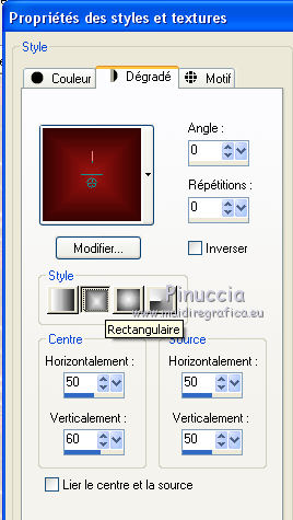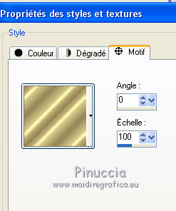 Ce tutoriel a été créé et traduit avec CorelX12, mais peut également être exécuté avec les autres versions. Suivant la version utilisée, vous pouvez obtenir des résultats différents. Depuis la version X4, la fonction Image>Miroir a été remplacée par Image>Renverser horizontalement, et Image>Renverser avec Image>Renverser verticalement. Dans les versions X5 et X6, les fonctions ont été améliorées par la mise à disposition du menu Objets. Avec la nouvelle version X7, nous avons encore Image>Miroir et Image>Renverser/Retourner, mais avec nouvelles différences. Voir les détails à ce sujet ici Certaines dénominations ont changées entre les versions de PSP. Les plus frequentes dénominations utilisées: ![]() Traduction en italien ici Nécessaire pour réaliser ce tutoriel: Matériel ici Le tube utilisé est de Tocha Modules Externes: consulter, si nécessaire, ma section des filtres ici Artistics - Sponge ici Alien Skin Xenofex 2.0 - Constellation ici Animation Shop ici ![]() en fonction des couleurs utilisées, vous pouvez changer le mode mélange et l'opacité des calques. 1. Ouvrir une nouvelle image transparente 650 x 500 pixels. 2. Placer en avant plan la couleur claire #9f1410, et en arrière plan la couleur foncée #350303. ![]() Préparer en avant plan un dégradé de premier plan/arrière plan, style Rectangulaire. ![]() Remplir l'image transparente du dégradé.4. Effets>Modules Externes>Artistics>Sponge. ![]() 5. Effets>Effets de bords>Accentuer davantage. 6. Ouvrir le tube de la femme - Édition>Copier. Revenir sur votre travail et Édition>Coller comme nouveau calque. Image>Redimensionner, à 80%, redimensionner tous les calques décoché. Déplacer le tube en bas sur le bord.7. Effets>Effets 3D>Ombre portée, ombre sur le nouveau calque coché. ![]() Rester positionné sur le calque de l'ombre. Effets>Effets de distorsion>Torsion. ![]() Réduire l'opacité de ce calque à 50%. 8. Vous positionner sur le calque du haut de la pile. Signer votre travail sur un nouveau calque. 9. Ouvrir le texte "tekst present" - Édition>Copier. Revenir sur votre travail et Édition>Coller comme nouveau calque. Déplacer ce texte en haut à droite.Effets>Effets 3D>Ombre portée, comme précédemment. 10. Image>Ajouter des bordures, 1 pixel, symétrique, couleur d'arrière plan. Image>Ajouter des bordures, 2 pixels, symétrique, couleur d'avant plan. Placer en arrière plan Motif et sélectionner un motif or à choix, avec ces paramètres. ![]() Activer l'outil Baguette magique ![]() ![]() et cliquer sur le bord de 2 pixel pour le sélectionner. Remplir la sélection avec le motif or.Sélections>Désélectionner tout. 11. Image>Ajouter des bordures, 1 pixel, symétrique, couleur d'arrière plan. Image>Ajouter des bordures, 20 pixels, symétrique, couleur d'avant plan. Sélectionner le bord de 20 pixels avec la baguette magique ![]() 12. Effets>Modules Externes>Artistics - Sponge, comme précédemment. Effets>Effets de bords>Accentuer davantage. Sélections>Désélectionner tout. 13. Image>Ajouter des bordures, 1 pixel, symétrique, couleur d'arrière plan. Image>Ajouter des bordures, 2 pixels, symétrique, couleur d'avant plan. Sélectionner le dernier bord avec la baguette magique ,et remplir avec le motif or.Sélections>Désélectionner tout. 14. Activer l'outil Stylo - style de Ligne Fil barbelé,![]() Inverser les couleurs pour avoir le motif or en avant plan et fermer la couleur d'arrière plan. 15. Tracer des lignes - voir mon exemple - une fois de le haut vers le bas et une fois du bas vers le haut. Lorsque vous avez terminé: Calques>Convertir en calque raster. 16. Sélections>Sélectionner tout. Sélections>Flottante. Sélections>Statique. 17. Effets>Effets 3D>Ombre portée. ![]() Garder sélectionné. 18. Effets>Modules Externes>Alien Skin Xenofex 2.0 - Constellation. ![]() Sélections>Désélectionner tout. 19. &Acute;dition>Copie Spéciale>Copier avec fusion. Ouvrir Animation Shop et Édition>Coller>Coller comme nouvelle animation. Revenir sur PSP. Édition>Annuler Désélectionner tout. Édition>Annuler Constellation. Répéter l'Effet Constellation comme précédemment, mais cliquer une fois sur Random Seed. ![]() Sélections>Désélectionner tout. &Acute;dition>Copie Spéciale>Copier avec fusion. Revenir sur Animation Shop et Édition>Coller>Coller après l'image active. À nouveau dans PSP. Édition>Annuler Désélectionner tout. Édition>Annuler Constellation. Répéter l'Effet Constellation, cliquer sur Random Seed et ok. Sélections>Désélectionner tout. &Acute;dition>Copie Spéciale>Copier avec fusion. Sur Animation Shop et Édition>Coller>Coller après l'image active. Image>Redimensionner, à 500 pixels de largeur, ou à votre convenance. Contrôler le résultat en cliquant sur Visualiser l'animation ![]() et sauvegarder au format gif. L'ancienne version du tutoriel avec un tube de Guismo. ![]() ![]() Si vous avez des problèmes, ou des doutes, ou vous trouvez un link modifié, ou seulement pour me dire que ce tutoriel vous a plu, vous pouvez m'écrire. 11 Décember 2015 |