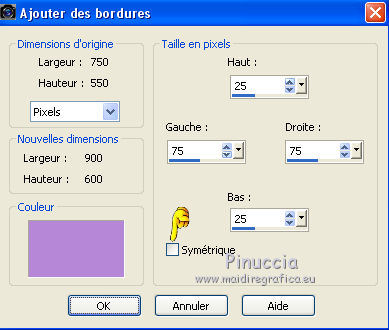 20. Image>Ajouter des bordures, symétrique décoché, couleur d'avant plan #b587d6.