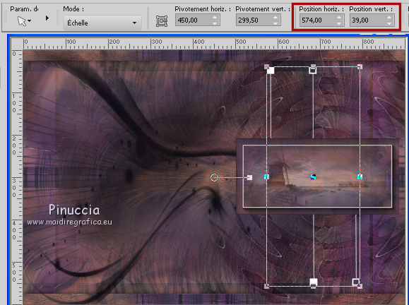 et placer Position horiz.: 574,00 et Position vert.: 39,00.