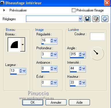 45. Effets>Effets 3D>Biseautage intérieur, comme précédemment.
