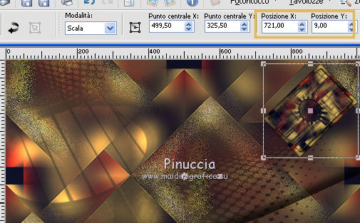 e imposta Posizione X: 721,00 e Posizione Y: 9,00.