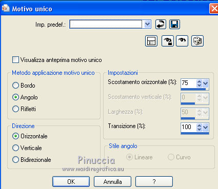 16. Effetti>Effetti di immagine>Motivo unico, con i settaggi standard.