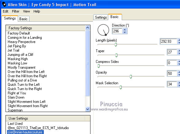 Effets>Modules Externes>Alien Skin Eye Candy 5 Impact - Motion trail.
