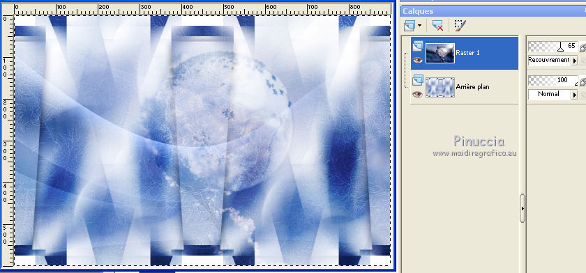 24. Placer le calque en mode Recouvrement et réduire l'opacité à 65%.