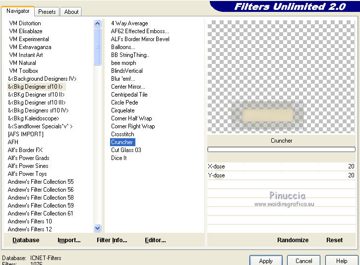41. Effetti>Plugins>Filters Unlimited 2.0 &Bkg designers sf10I> - Cruncher.