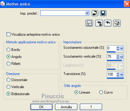 Effetti>Effetti di immagine>Motivo unico, con i settaggi standard.