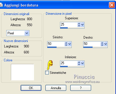 Immagine>Aggiungi bordatura, simmetriche non selezionato, con i settaggi precedenti.