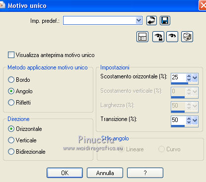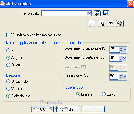6. Effetti>Effetti di immagine>Motivo unico, con i settaggi standard.