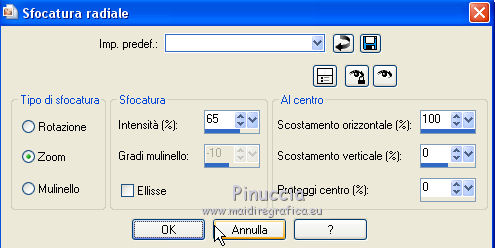 Regola>Sfocatura>Sfocatura radiale, con i settaggi precedenti.