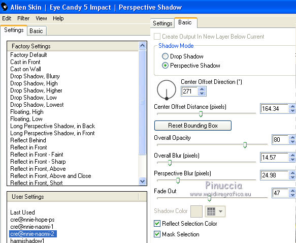 41. Effets>Modules Externes>Alien Skin Eye Candy 5 Impact - Perspective Shadow.