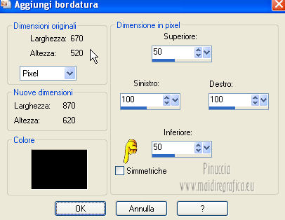 Immagine>Aggiungi bordatura, simmetriche non selezionato, con il colore di sfondo.