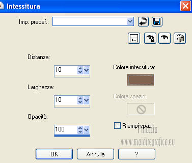 Effetti>Effetti di trama>Intessitura, colore intessitura: primo piano.