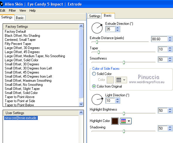 Seleziona il preset nina-cre@nnie-extrude e ok.