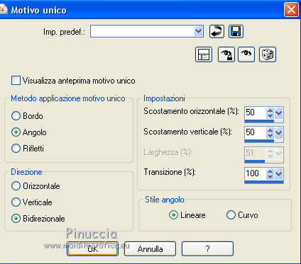 19. Effetti>Effetti di immagine>Motivo unico, con i settaggi standard.