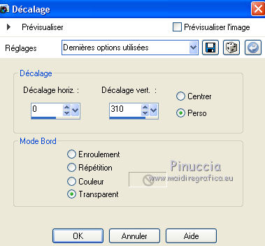 Ce tutoriel a été créé avec CorelX6 et traduit avec CorelX12, mais il peut également être exécuté avec les autres versions. Suivant la version utilisée, vous pouvez obtenir des résultats différents. Depuis la version X4, la fonction Image>Miroir a été remplacée par Image>Renverser horizontalement, et Image>Renverser avec Image>Renverser verticalement. Dans les versions X5 et X6, les fonctions ont été améliorées par la mise à disposition du menu Objets. Avec la nouvelle version X7, nous avons encore Image>Miroir et Image>Renverser/Retourner, mais avec nouvelles différences. Voir les détails à ce sujet ici Certaines dénominations ont changées entre les versions de PSP. Les plus frequentes dénominations utilisées: ![]() Traduction en italien ici Vos versions ici Nécessaire pour réaliser ce tutoriel: Matériel ici Pour le matériel merci Mentali et Narah Modules Externes: consulter, si nécessaire, ma section des filtres ici Filters Unlimited 2.0 ici VM Natural - Sparkle ici Flaming Pear - Flood ici Simple - Fur 2 ici Mura's Meister - Copies ici Toadies - What are you ici FM Tile Tools - Warp, Roll image, Blend Emboss ici Filtres Toadies, Simple et VM Natural peuvent être utilisés seuls ou importés dans Filters Unlimited. voir comment le faire ici). Si un filtre est fourni avec cette icône, ![]() en fonction des couleurs utilisées, vous pouvez changer le mode mélange et l'opacité des calques. Ouvrir le masque dans PSP et le minimiser avec le reste du matériel. 1. Ouvrir une nouvelle image transparente 650 x 500 pixels. 2. Placer en avant plan la couleur claire #e92732, et en arrière plan la couleur foncée #0e0808. ![]() 3. Remplir l'image transparente avec la couleur d'arrière plan.4. Calques>Nouveau calque raster. Sélections>Sélectionner tout. 5. Ouvrir le tube mentalioriental12, Édition>Copier. ne pas fermer le tube: on va s'en servir plus tard Revenir sur votre travail et Édition>Coller dans la sélection. Sélections>Désélectionner tout. 6. Effets>Effets d'image>Mosaïque sans jointures, par défaut. ![]() 7. Réglage>Flou>Flou gaussien - rayon 25. ![]() 8. Calques>Fusionner>Fusionner le calque de dessous. 9. Effets>Modules Externes>FM Tile Tools - Roll Image. ![]() 10. Effets>Effets de bords>Accentuer davantage. 11. Sélections>Sélectionner tout. 12. Image>Ajouter des bordures, symétrique décoché, couleur d'arrière plan. ![]() 13. Effets>Effets d'image>Mosaïque sans jointures. ![]() Sélections>Désélectionner tout. 14. Effets>Effets d'image>Mosaïque sans jointures, comme précédemment. 15. Calques>Dupliquer. Effets>Modules Externes>FM Tile Tools - Warp. ![]() 16. Image>Miroir. Placer le calque en mode Lumière douce et réduire l'opacité à 50%. 17. Calques>Fusionner>Fusionner le calque de dessous. 18. Calques>Nouveau calque raster. Remplir le calque avec la couleur d'arrière plan.19. Calques>Nouveau calque de masque>A partir d'une image. Ouvrir le menu deroulant sous la fenêtre d'origine et vous verrez la liste des images ouvertes. Sélectionner le masque Narah_Mask_0909. ![]() Calques>Fusionner>Fusionner le groupe. 20. Calques>Dupliquer. Image>Miroir. Calques>Fusionner>Fusionner le calque de dessous. 21. Image>Ajouter des bordures, symétrique décoché, couleur d'arrière plan. ![]() 22. Calques>Dupliquer. Effets>Modules Externes>Simple - Centre Tile. 23. Placer le calque en mode Écran. Image>Miroir. Calques>Fusionner>Fusionner le calque de dessous. 24. Calques>Nouveau calque raster. Activer l'outil Sélection ![]() (peu importe le type de sélection, parce que avec la sélection personnalisée vous obtenez toujours un rectangle), cliquer sur Sélection personnalisée ![]() et setter ces paramètres. ![]() 25. Effets>Effets 3D>Découpe. ![]() Sélections>Désélectionner tout. 26. Calques>Dupliquer. Image>Miroir. Calques>Fusionner>Fusionner le calque de dessous. 27. Calques>Dupliquer. Effets>Effets de distorsion>Coordonnées polaires. ![]() 28. Calques>Fusionner>Fusionner le calque de dessous. 29. Calques>Dupliquer. Image>Renverser. Calques>Fusionner>Fusionner le calque de dessous. 30. Effets>Effets de distorsion>Coordonnées polaires, comme précédemment. 31. Effets>Modules Externes>Simple - 4 way average. 32. Placer le calque en mode Lumière douce. 33. Ouvrir le tube mds4663_Chinese, Édition>Copier. Revenir sur votre travail et Édition>Coller comme nouveau calque. 34. Placer le calque en mode Lumière douce et réduire l'opacité à 45%. 35. Effets>Modules Externes>FM Tile Tools - Blend Emboss, 2 fois par défaut. ![]() Sélections>Désélectionner tout. 36. Image>Ajouter des bordures, symétrique décoché, comme précédemment. ![]() 37. Sélections>Inverser. Effets>Modules Externes>VM Natural - Sparkle. ![]() Sélections>Désélectionner tout. 38. Effets>Modules Externes>Flaming Pear - Flood. ![]() 39. Calques>Dupliquer. Image>Redimensionner, à 90%, redimensionner tous les calques décoché. 40. Effets>Modules Externes>Flaming Pear - Flood, comme précédemment. Image>Miroir. 41. Vous positionner sur le calque du bas de la pile. Sélection personnalisée ![]() ![]() Sélections>Transformer la sélection en calque. 42. Effets>Effets de bords>Accentuer davantage. Sélections>Désélectionner tout. Calques>Agencer>Déplacer vers le haut. 43. Effets>Effets de réflexion>Résonance. ![]() 44. Placer le calque en mode Assombrir. 45. Ouvrir le tube ME~Olanter~DVDM, Édition>Copier. Revenir sur votre travail et Édition>Coller comme nouveau calque. 46. Effets>Modules Externes>Mura's Meister - Copies. ![]() 47. Effets>Effets 3D>Ombre portée, couleur noire. ![]() 48. Effets>Effets d'image>Décalage. ![]() 49. Ouvrir le tube deco-orientallady, Édition>Copier. Revenir sur votre travail et Édition>Coller comme nouveau calque. 50. Effets>Effets d'image>Décalage. ![]() 51. Sélections>Sélectionner tout. Image>Ajouter des bordures, symétrique décoché, couleur d'arrière plan. ![]() 52. Sélections>Inverser. Effets>Modules E