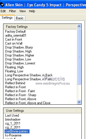 30. Effets>Modules Externes>Alien Skin Eye Candy 5 Impact - Perspective Shadow.