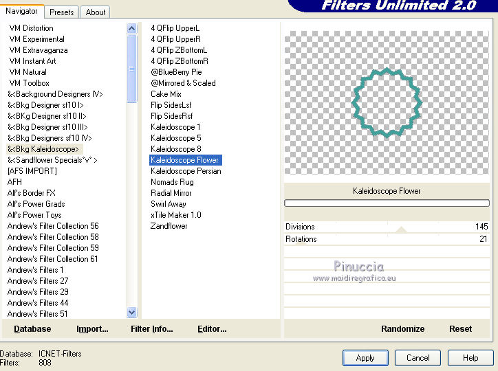 41. Effetti>Plugins>Filters Unlimited 2.0 - &<Bkg KaleidoscopeV> - Kaleidoscope Flower.