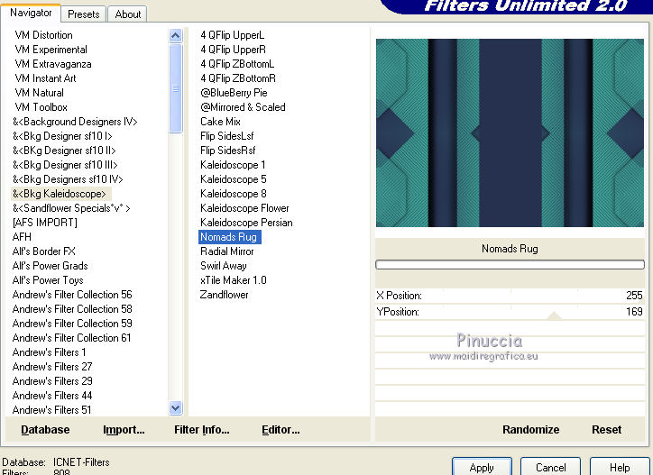 Effetti>Plugins>Filters Unlimited 2.0 - &<bkg Kaleidoscope> - Nomads rug.