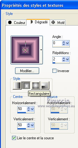 9. Changer les réglages du Dégradé, style Rectangulaire.