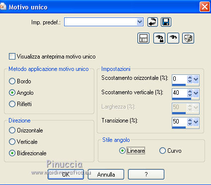 30. Effetti>Effetti di immagine>Motivo unico, con i settaggi precedenti.