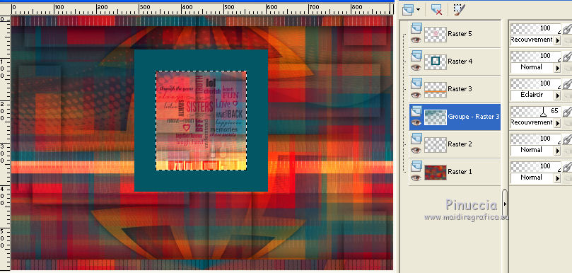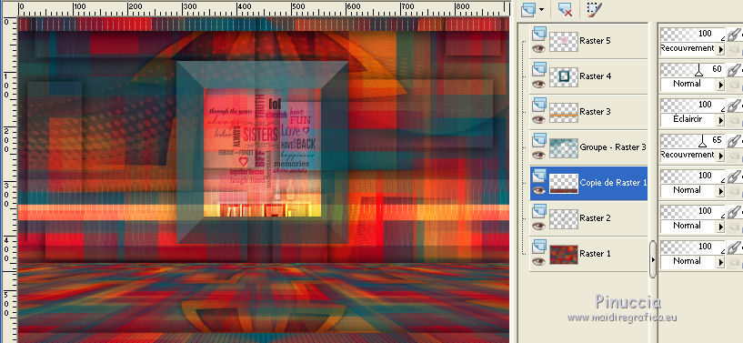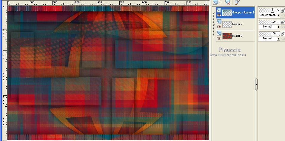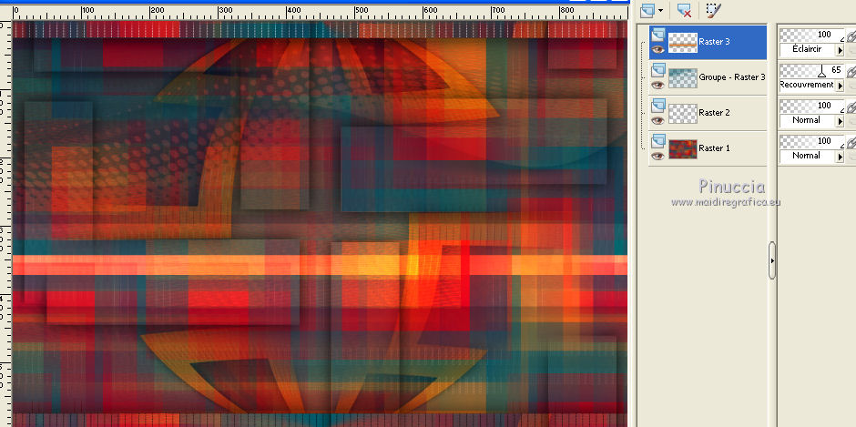 Placer le calque en mode Recouvrement et réduire l'opacité à 65%.