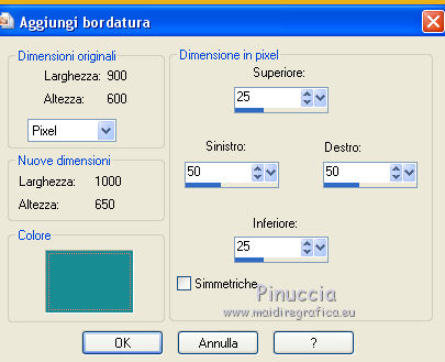 7. Immagine>Aggiungi bordatura, simmetriche non selezionato colore di sfondo #188d93.