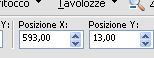 e imposta Posizione X: 593,00 e Posizione Y: 13,00.