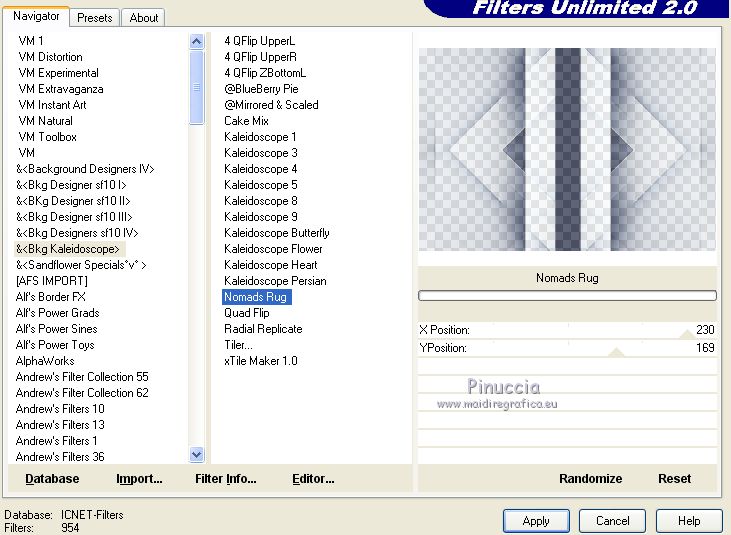 Effets>Modules Externes>Filters Unlimited 2.0 - &<Background Kaleidoscope IV> - Nomads rug